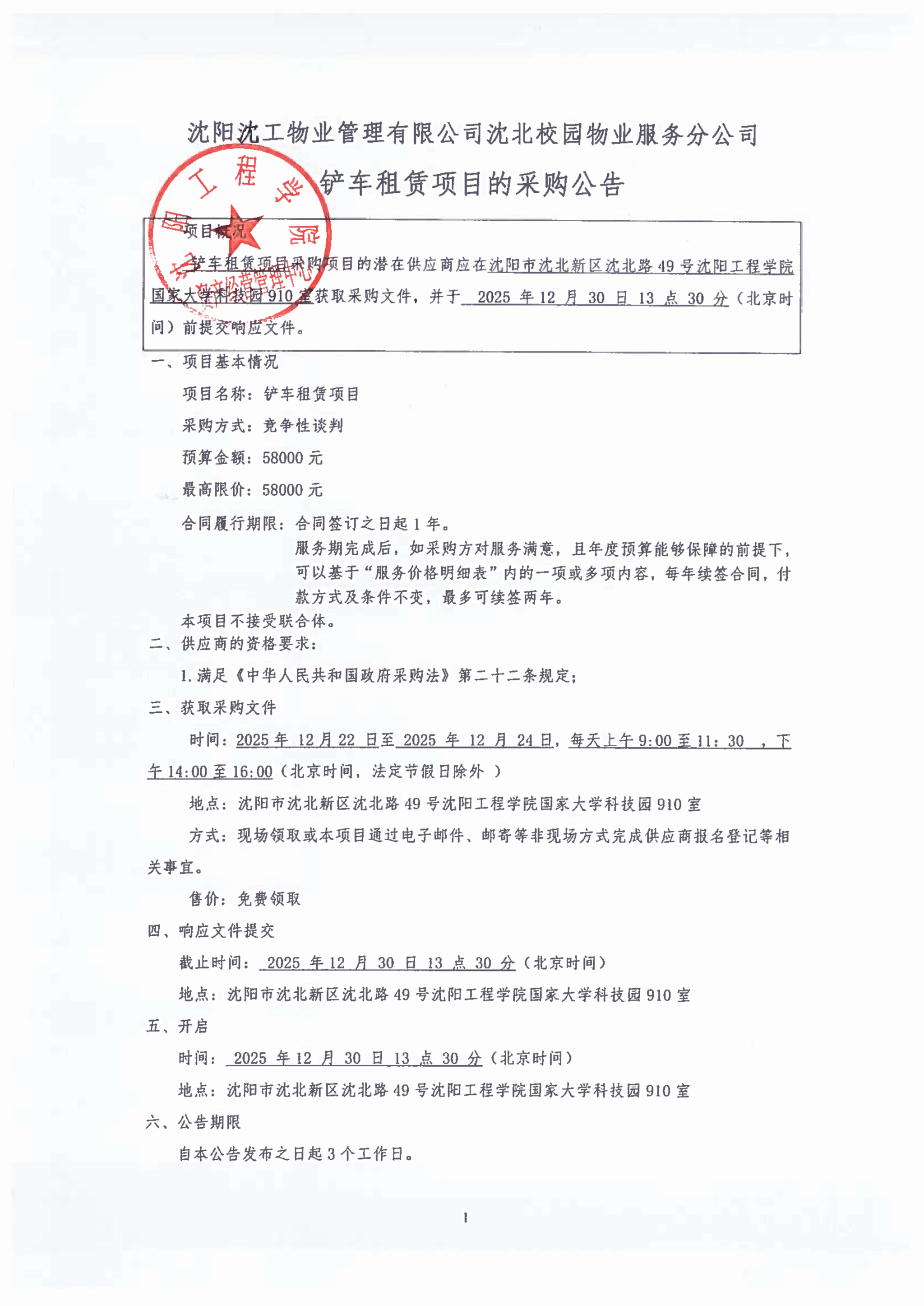 上一篇:沈阳沈工物业管理有限公司沈北校园物业服务分公司铲车租赁项目结果公告