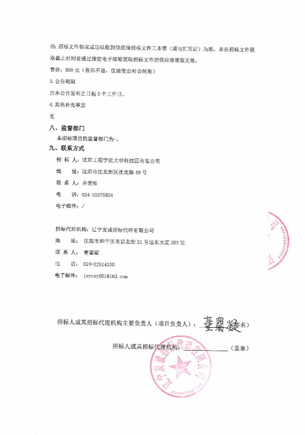 沈阳工程学院大学科技园有限公司消防监控系统维保服务采购项目中标公告
