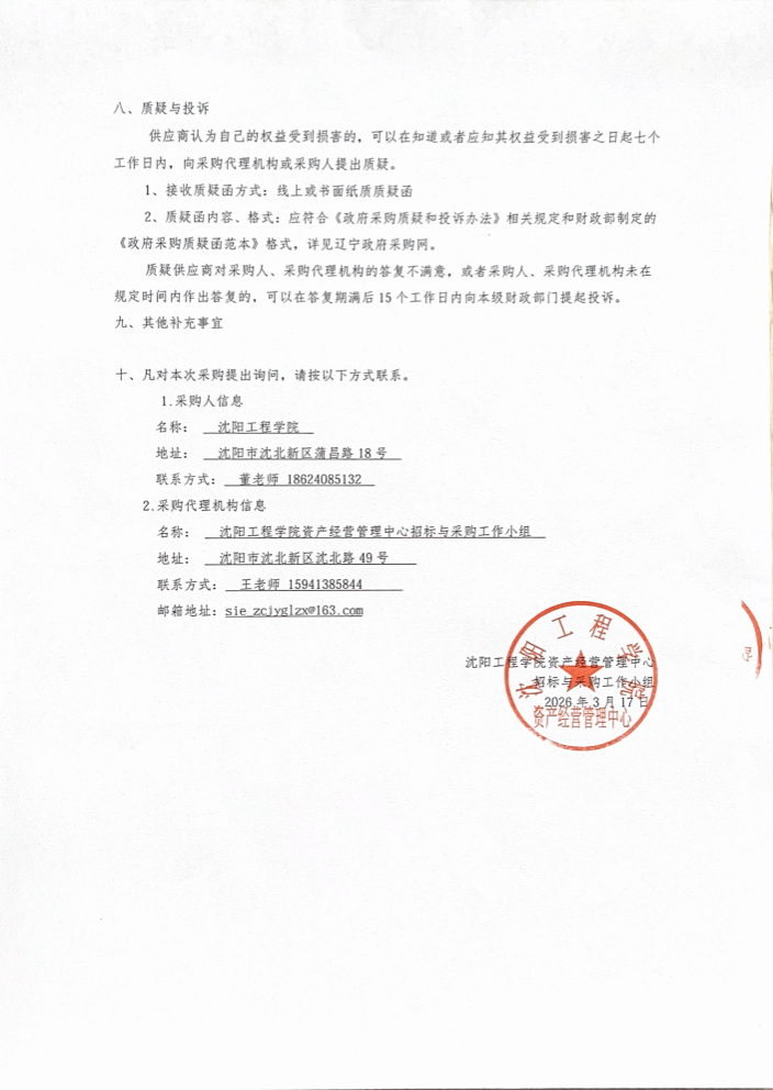 沈阳工程学院新建13#、14#学生宿舍冷热联供项目采购公告